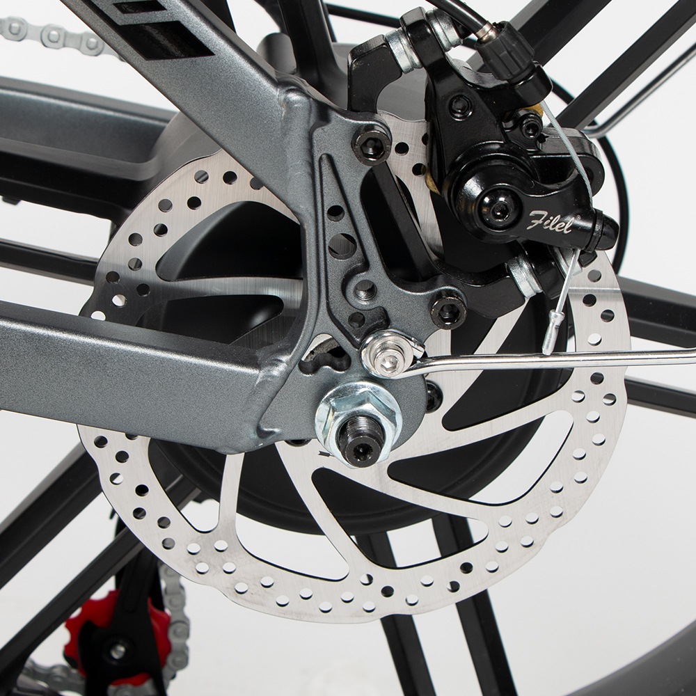 Permanent magnet synchronous high-speed motor with brushless power system. The maximum speed is 25~35kmh. The 750W motor gives you an effortless riding experience even at 20 degrees uphill. This is the power needed for off-road EBiking!
