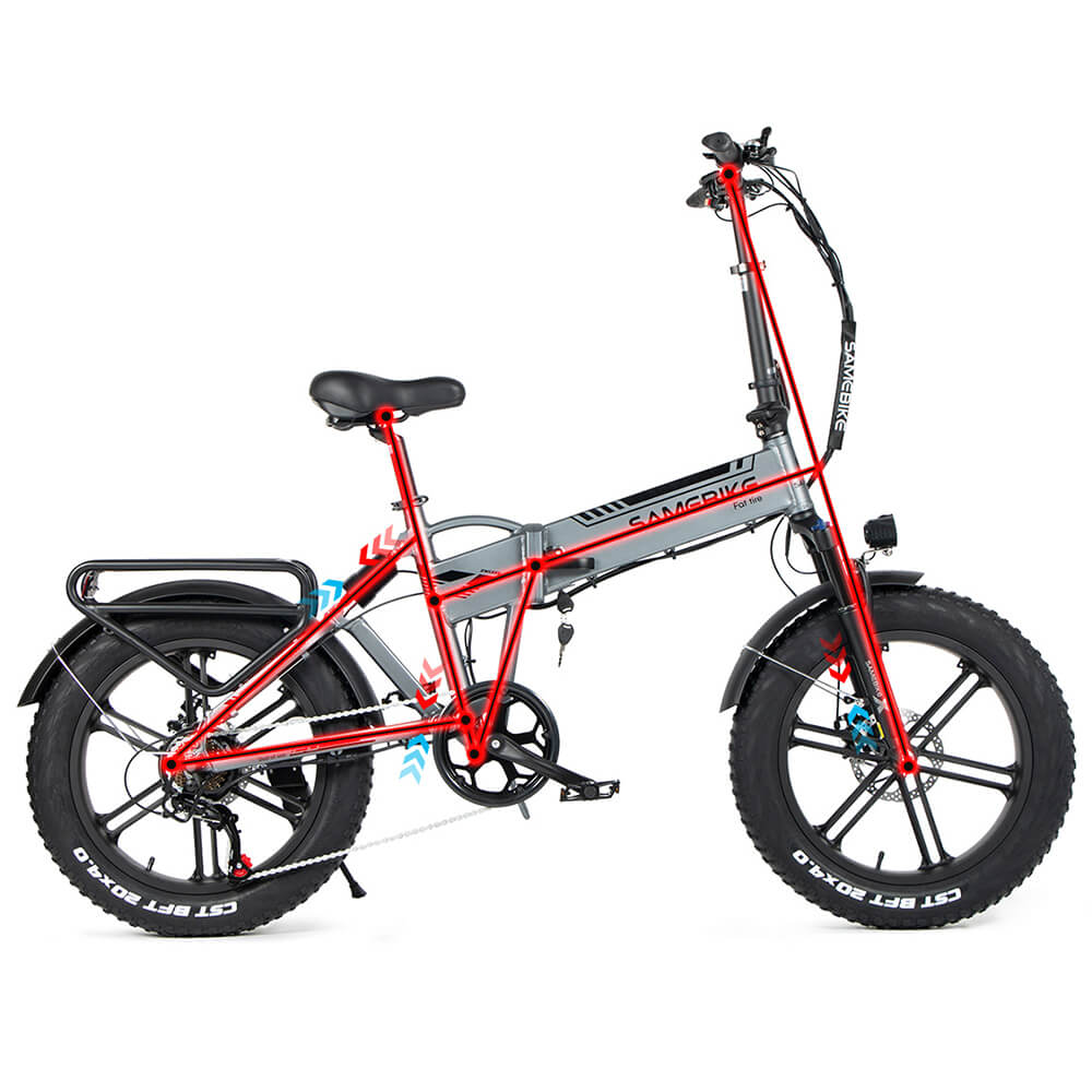 SamEbike's most powerful and comfortable folding ebike! 4" fat tires and full suspension will absorb all the bumps in your path, ensure that you'll be comfortable whether you choose to ride on pavement or on the trail.